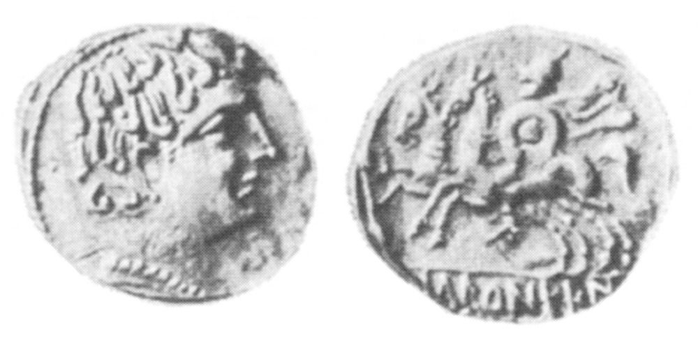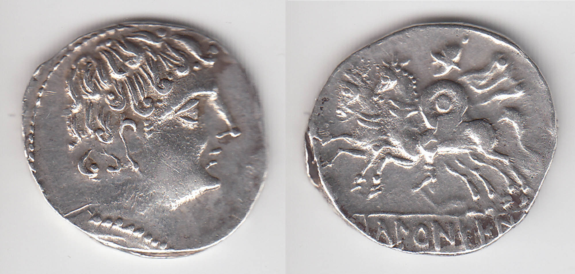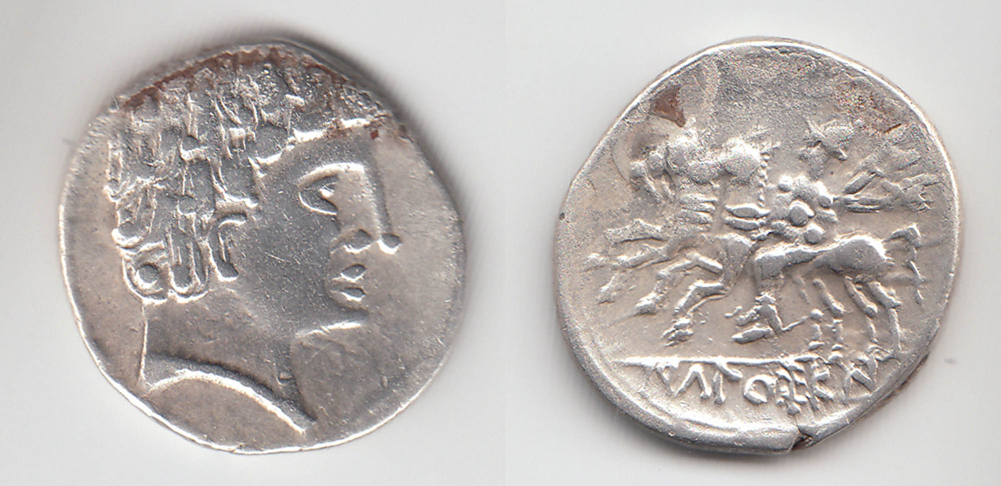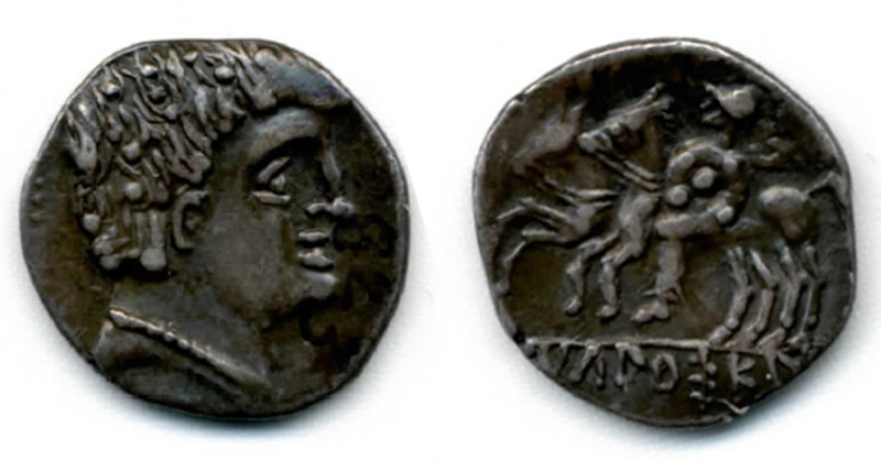 Denario de Bolskan ACIP-1418. Fotografía F. Chaves: «Los Tesoros en el Sur de Hispania»