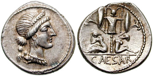 Del denario romano republicano más reciente (de los depositados en la citada Casa-Museo) hay tres ejemplares, y se trata del Julius Cesar RRC 468/1, del 46-45 a.C., y el más antiguo es un Sempronius Pitio RRC 216/1 del 148 a.C.