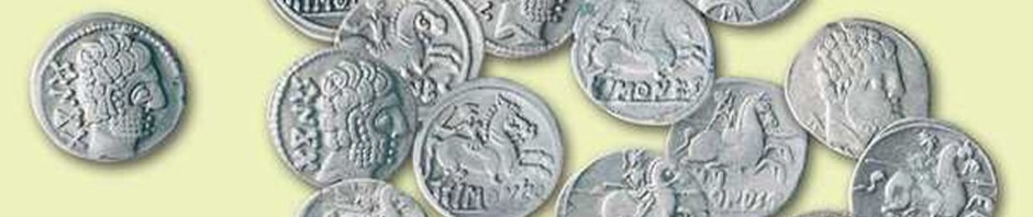 El otro ejemplar (298) es, como hemos dicho, del grupo V, del tipo 523, seguramente acuñado inmediatamente antes de los tipos «protrusivos». Pesa 2,9 g y su eje de cuño es a la 1h. El punto de arranque de las emisiones del grupo V se sitúa en torno al 120-115 a.C. Al ser ambos ejemplares de los últimos del grupo, probablemente nos situemos ya al inicio del siglo I a.C.
