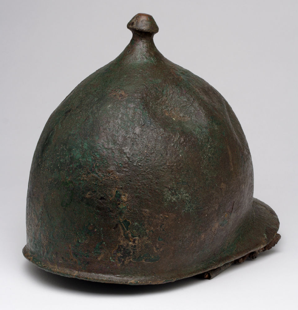 casco romano (siglo I a.C) tipo montefortino C, hallado en el Piquete de la Atalaya. (foto Museo de Zaragoza)